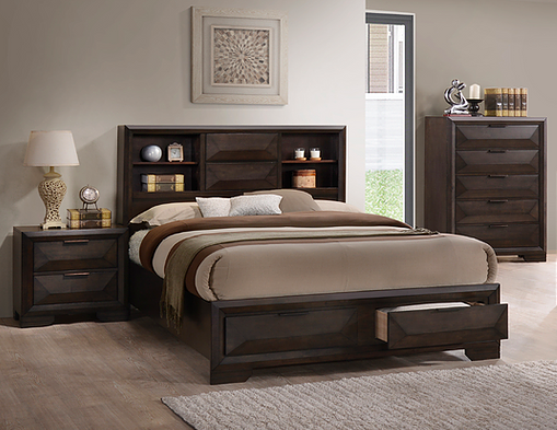 Offering everything you could ask for in a bedroom furniture set, this rich espresso collection is comfortable, functional and stylish. This bed frame has two pull-out drawers to top off its elegant and functional style!